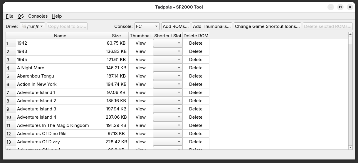 Y de esta forma puedes añadir allí ROMs (pinchando en Add ROMS…). Modificar su caratula que se mostrará en el menú de la consola e incluso borrar los juegos que no quieras.