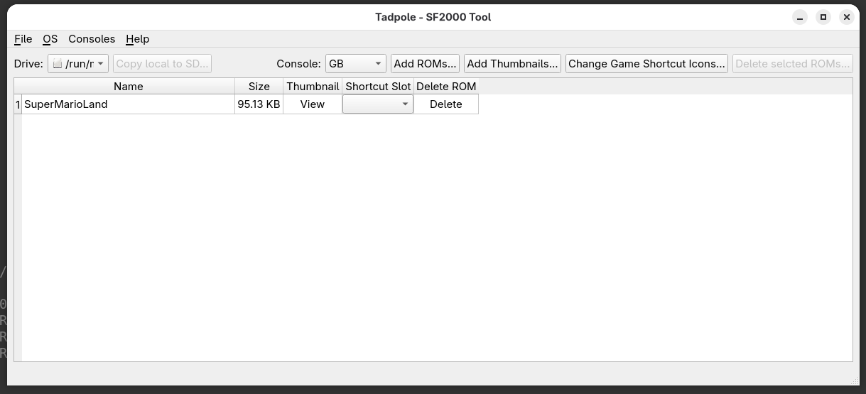 Una vez limpio de roms el directorio GB vamos a obtener el juego Super Mario Land y la caratula del juego.