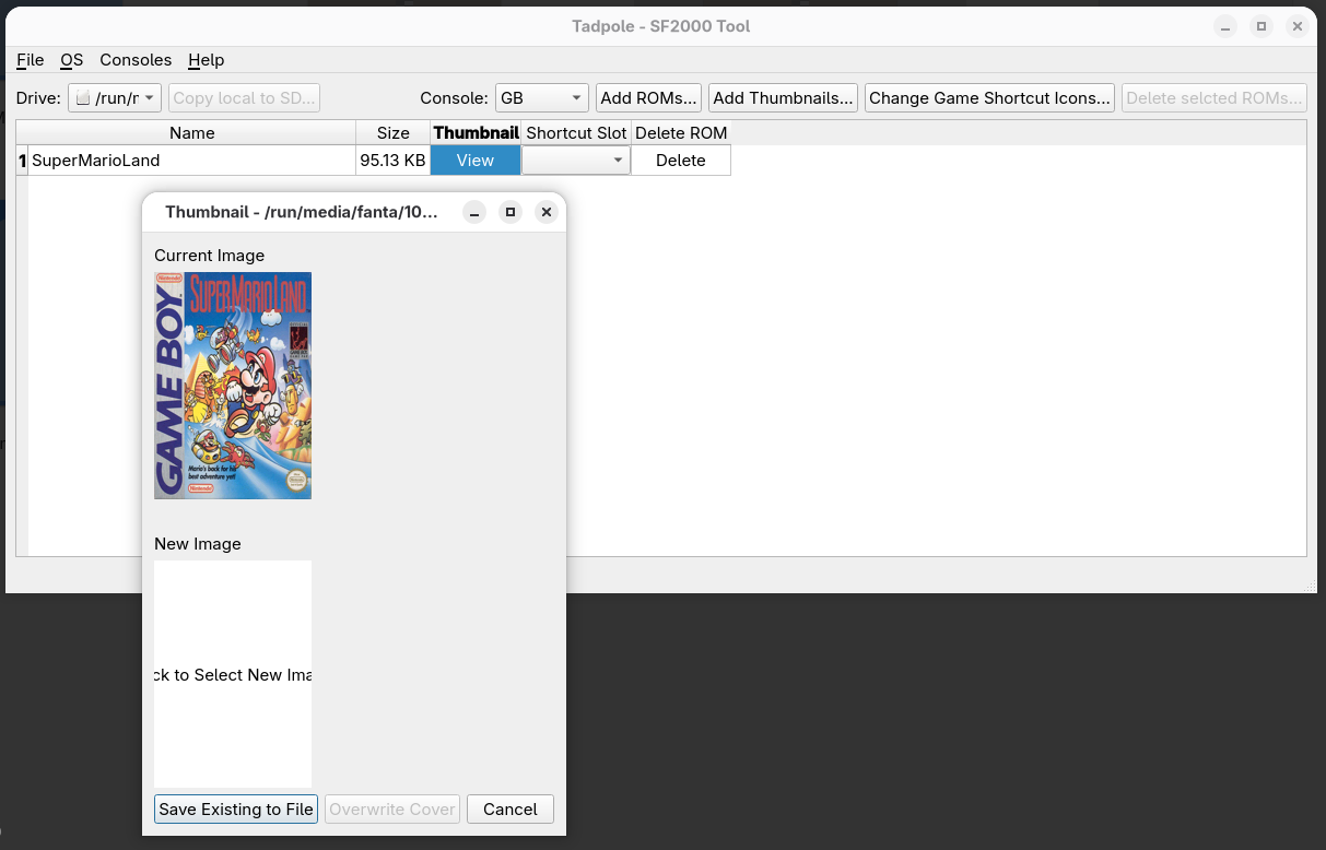 En mi caso es porque tengo allí el SuperMarioLand copiado. Si pinchamos en View (columnas thumbnail) vamos a poder añadirle una caratula a la rom y se generará el archivo ZGB.
