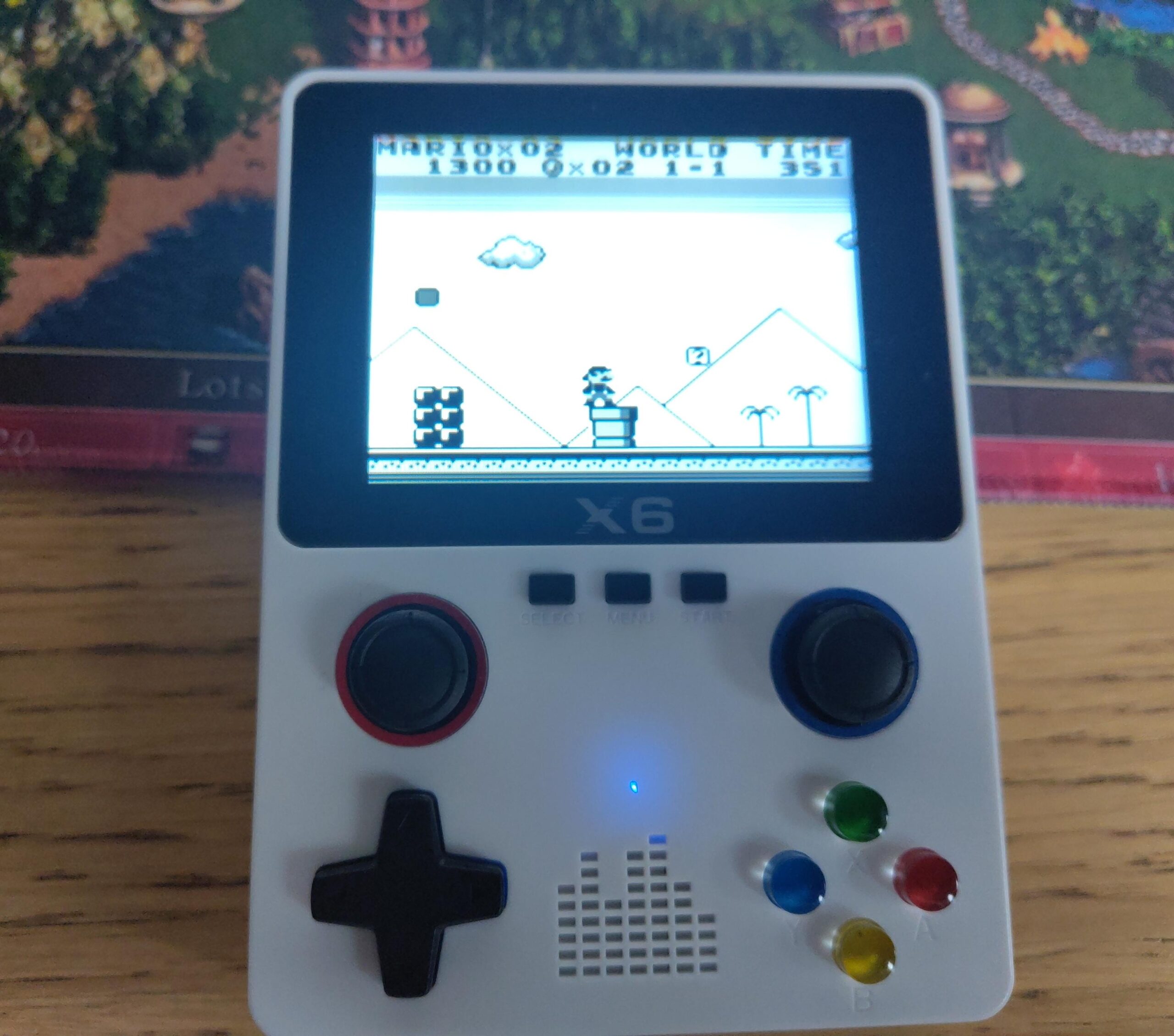 Hablo de la consola portátil X6 versión V-8147. La llaman «Consola X6» pero existen diferentes versiones y por eso lo mismo encontrarás vídeos de gente diciendo que añadir juegos es tan sencillo como copiar las roms en la tarjeta SD y listo.