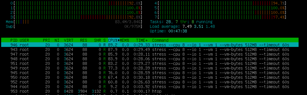stress --cpu $(nproc) --io 1 --vm 1 --vm-bytes 512MB --timeout 40s