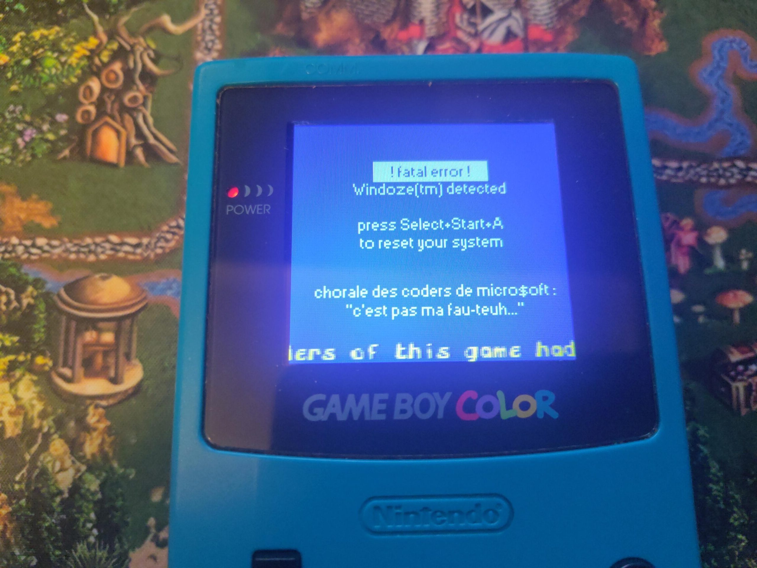 Antes de comentar sobre la BSOD (Blue Screen of Death) he de aclarar que estoy muy contento. Estoy como un niño con zapatillas nuevas pero en este caso con una Game Boy Color retroiluminada. A mis casi 40 años estoy disfrutando de esas consolas que no disfruté de niño, de esos juegos que veía en las revistas e imaginaba como podrían ser pero que nunca los ví en funcionamiento realmente.