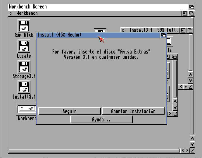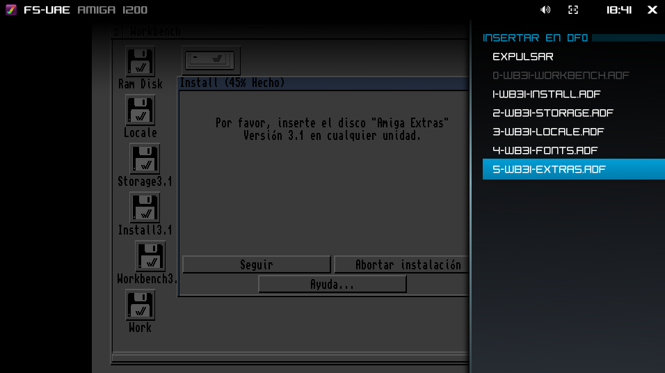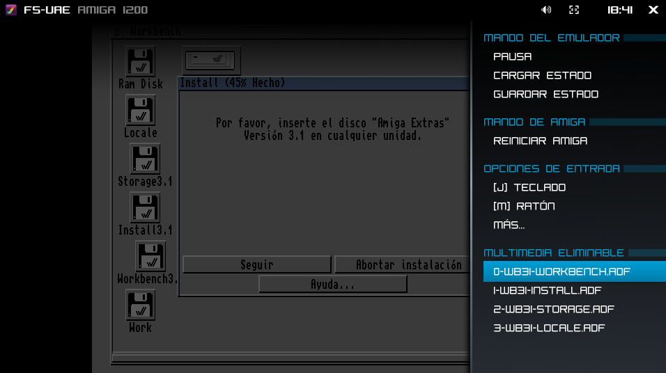 Y llegará un momento en el que va a pedirnos que insertemos el disco «Amiga Extras».