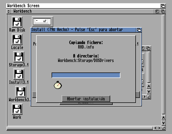 Pulsa ENTER y será como si hubieras cambiado el disquete en la disquetera DF0. Has metido el 5-wb31-extras.adf cuando antes tenías el 0-wb31-wordkbench.adf.