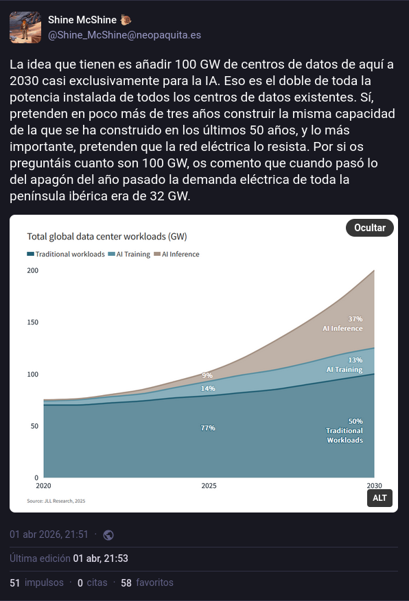 @Shine_McShine comentaba el otro día lo siguiente en la red social libre y federada Mastodon en referencia al consumo energético:
