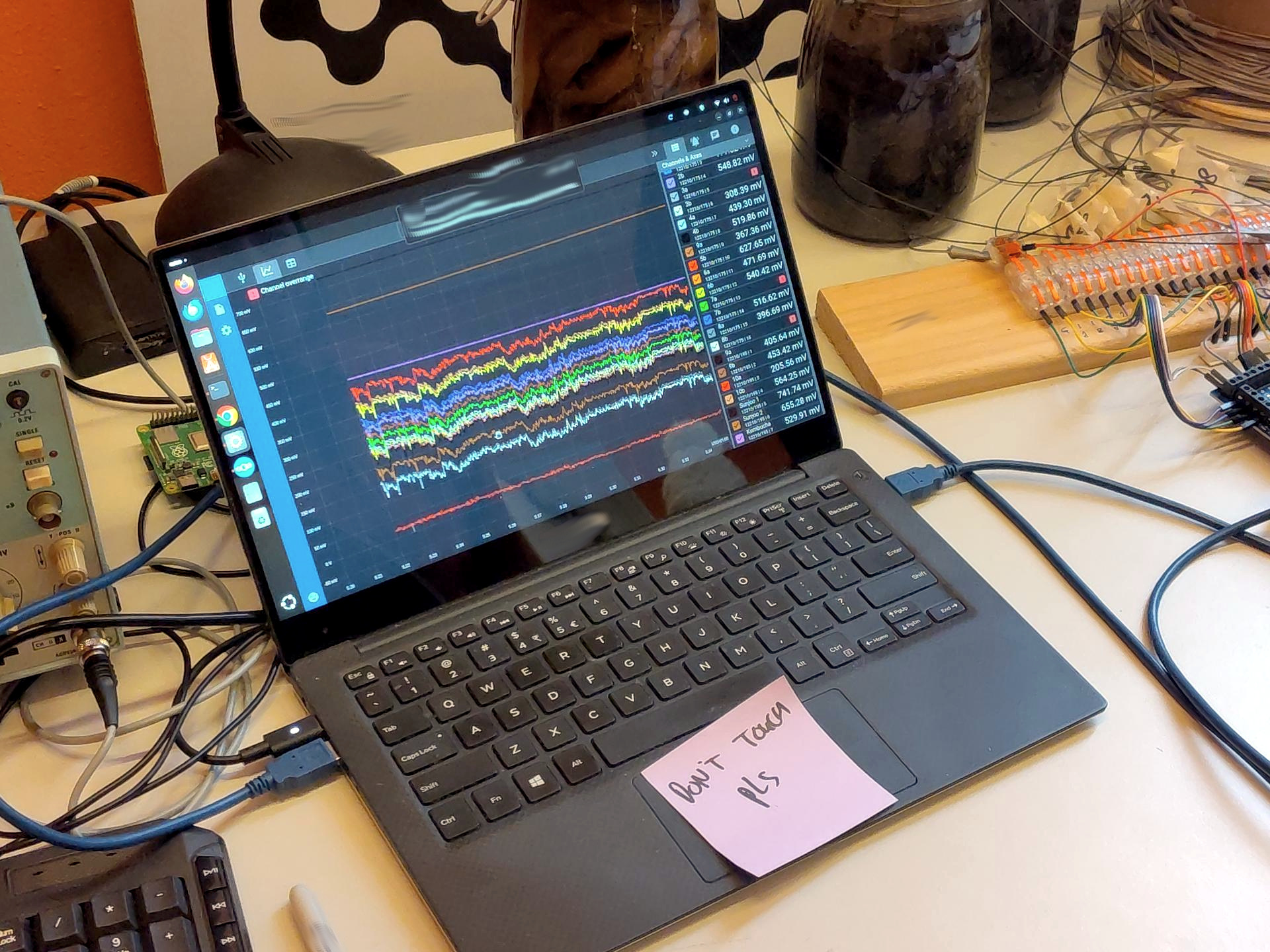 Esta foto es de dentro del laboratorio. Por lo que veo usan Linux y en la foto se ven mediciones en mV (milivoltios).