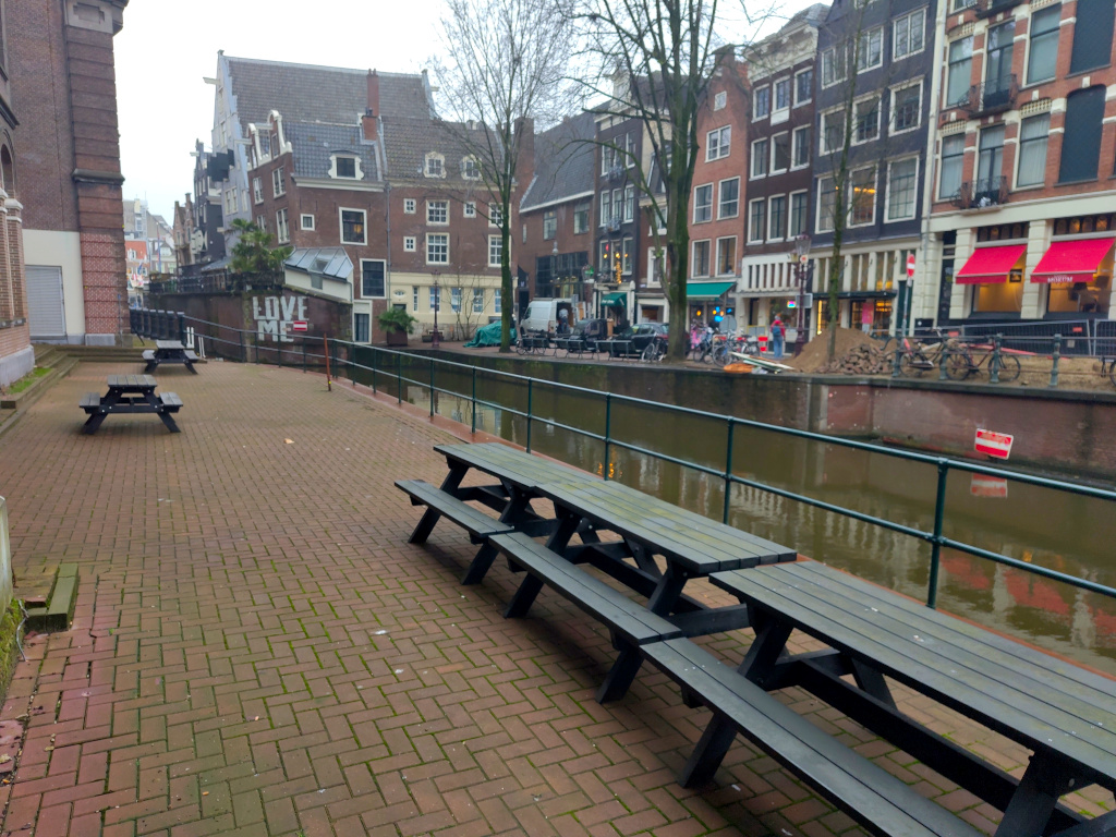 Ese pequeño jardín en macetas se encuentra en la UvA. Pasan la maraña de cables al laboratorio por una ventana que da a los canales de Amsterdam.