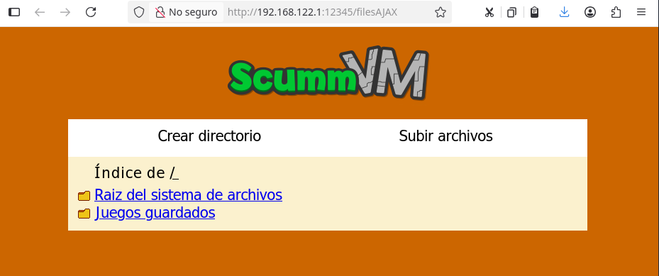 Ahora ya desde otro ordenador en la red local si visitamos 192.168.122.1:12345 desde el navegador web vamos a ver lo siguiente: