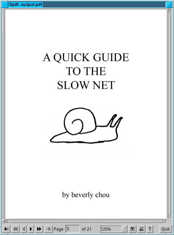 Lo he bajado y lo he juntado en un pdf que puede consultarse aquí: A_quick_guide_to_the_slow_net-Beverly_cou.pdf