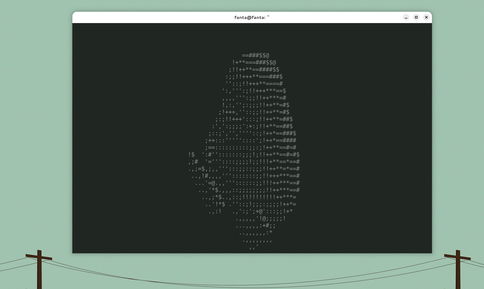 apt install 3d-ascii-viewer Download https://github.com/autopawn/3d-ascii-viewer/blob/master/models/linux-mascot-tux.obj 3d-ascii-viewer linux-mascot-tux.obj