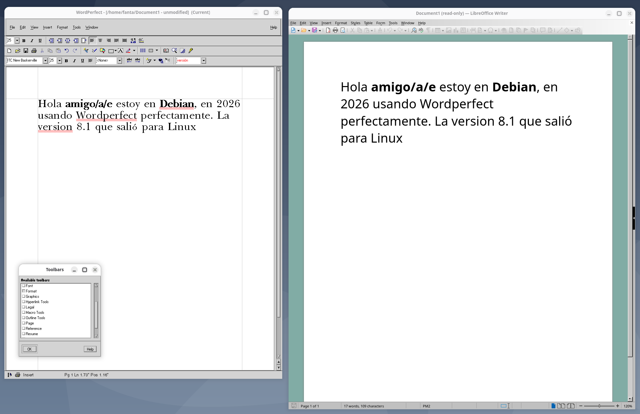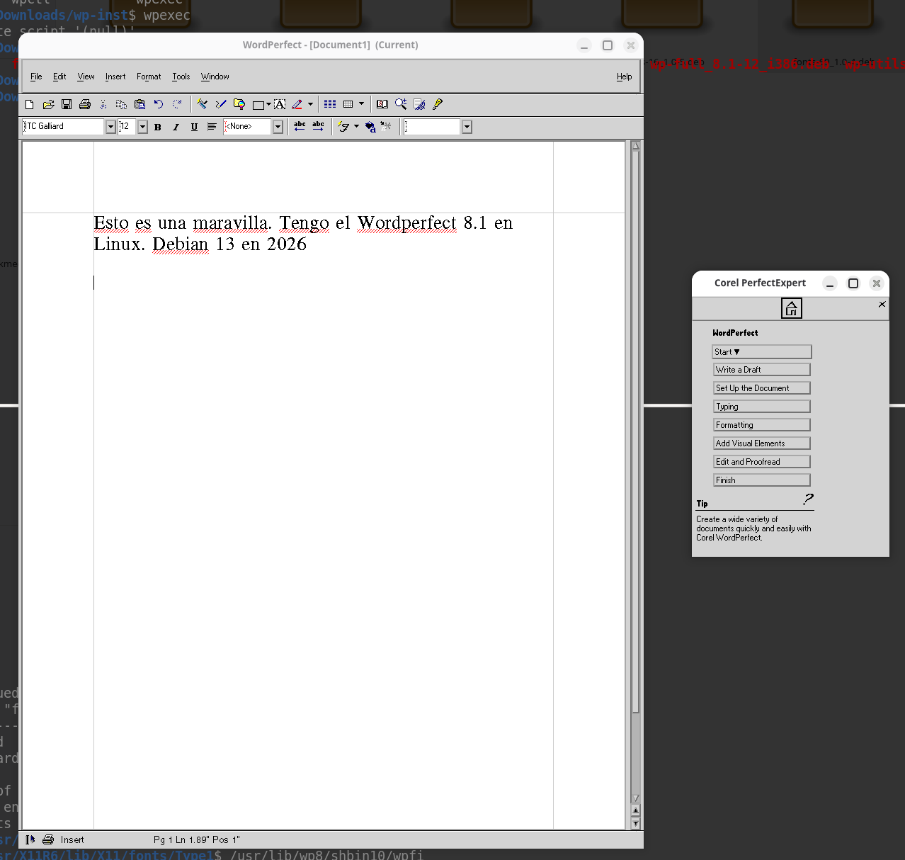 Aquí dejo una receta de como hacer funcionar Wordperfect 8.1 en GNU+Linux en 2026. Concretamente en Debian 13.
